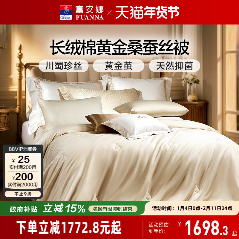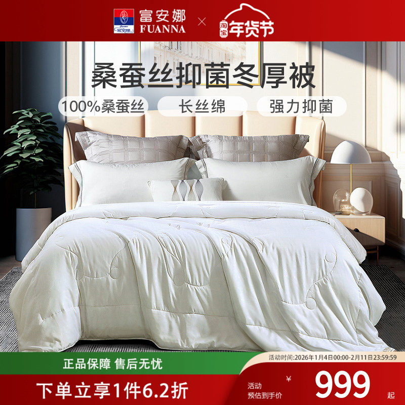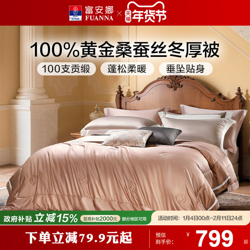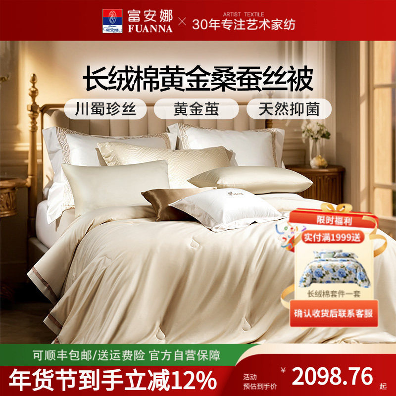 富安娜被子蚕丝被黄金茧桑蚕丝冬厚被长绒棉春秋被褥结婚纯棉被芯