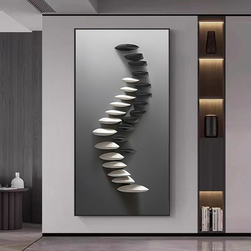 黑白现代简约玄关装饰画入户艺术抽象高级感挂画走廊尽头新款壁画