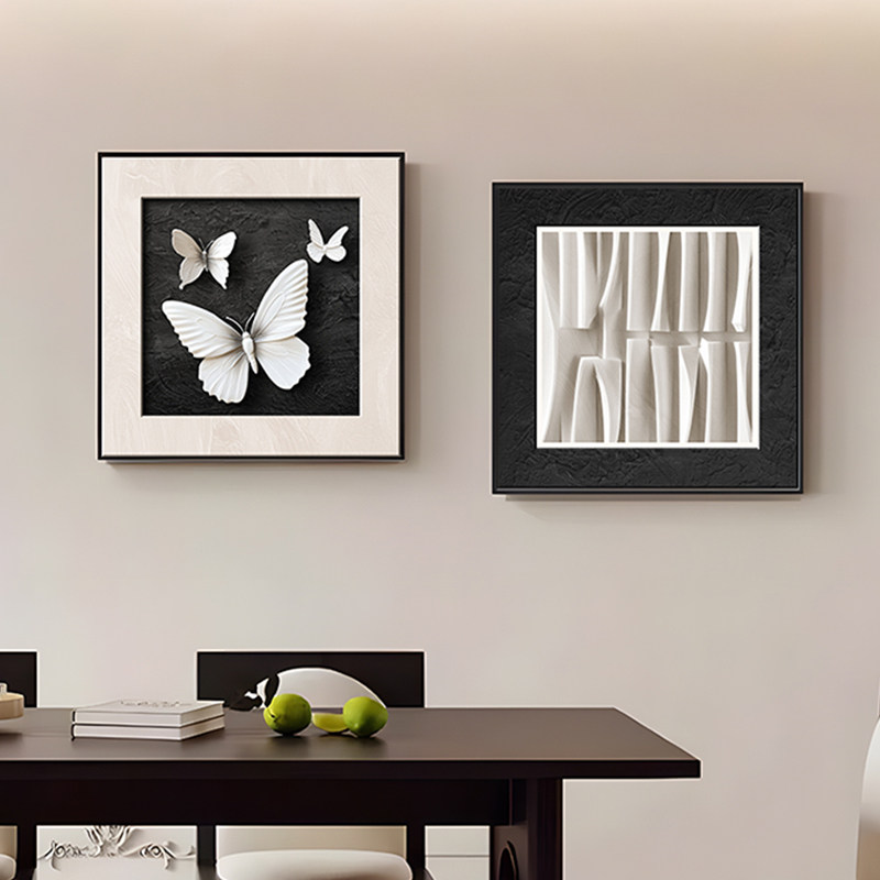现代简约餐厅装饰画高级感抽象餐桌背景墙挂画黑白蝴蝶客厅墙壁画