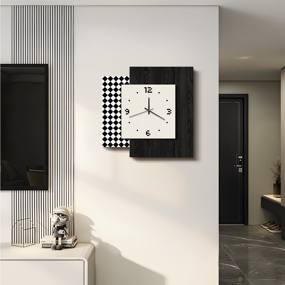 现代简约客厅电视背景墙壁钟2026新款黑白艺术钟表挂钟高级感餐厅