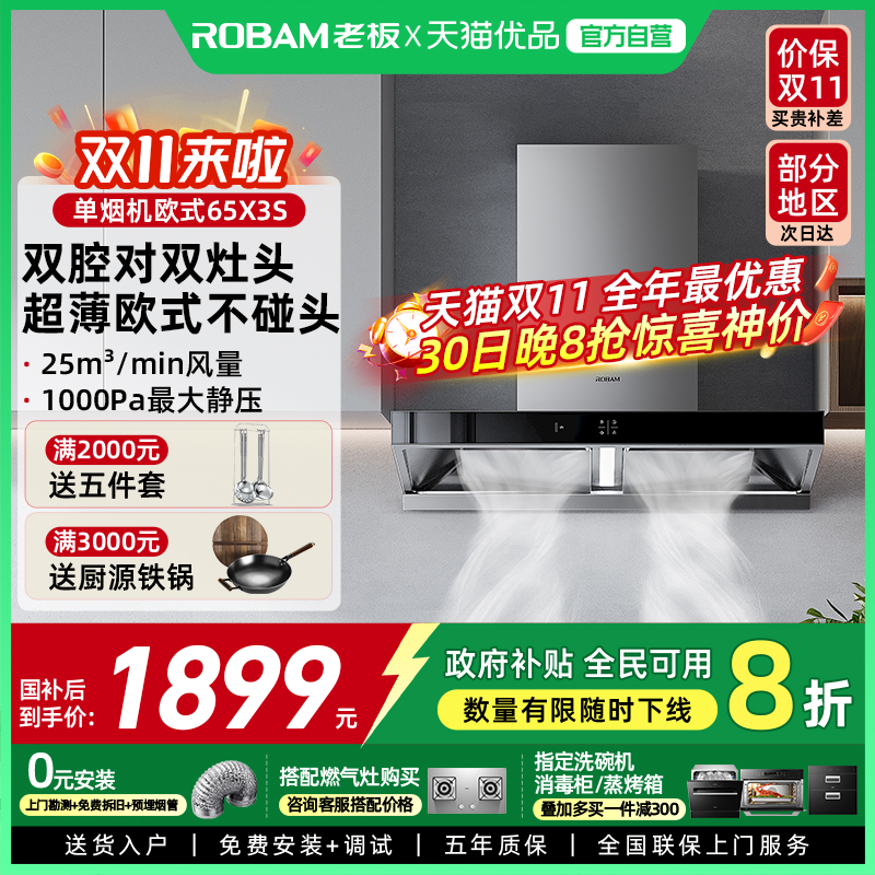 政府补贴|老板油烟机顶侧双吸名气旗舰小黑翼ProA586/A586H/A5508
