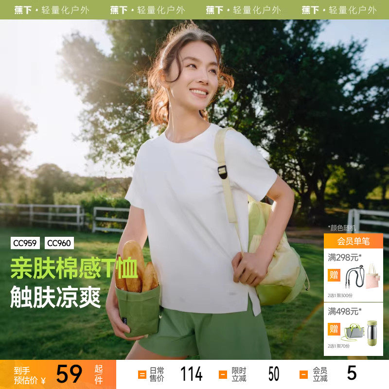 蕉下运动凉感宽松T恤女短袖户外春夏2025徒步健身内搭户外打底衫
