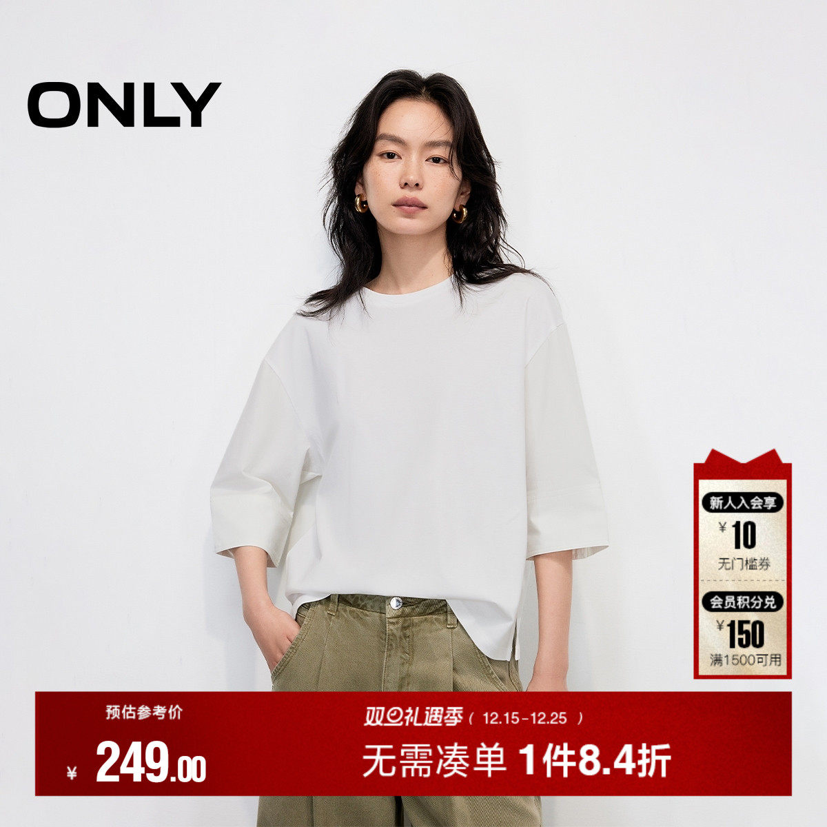 ONLY2025秋冬新款可爱宠物印花舒适柔软透气圆领落肩宽松T恤女
