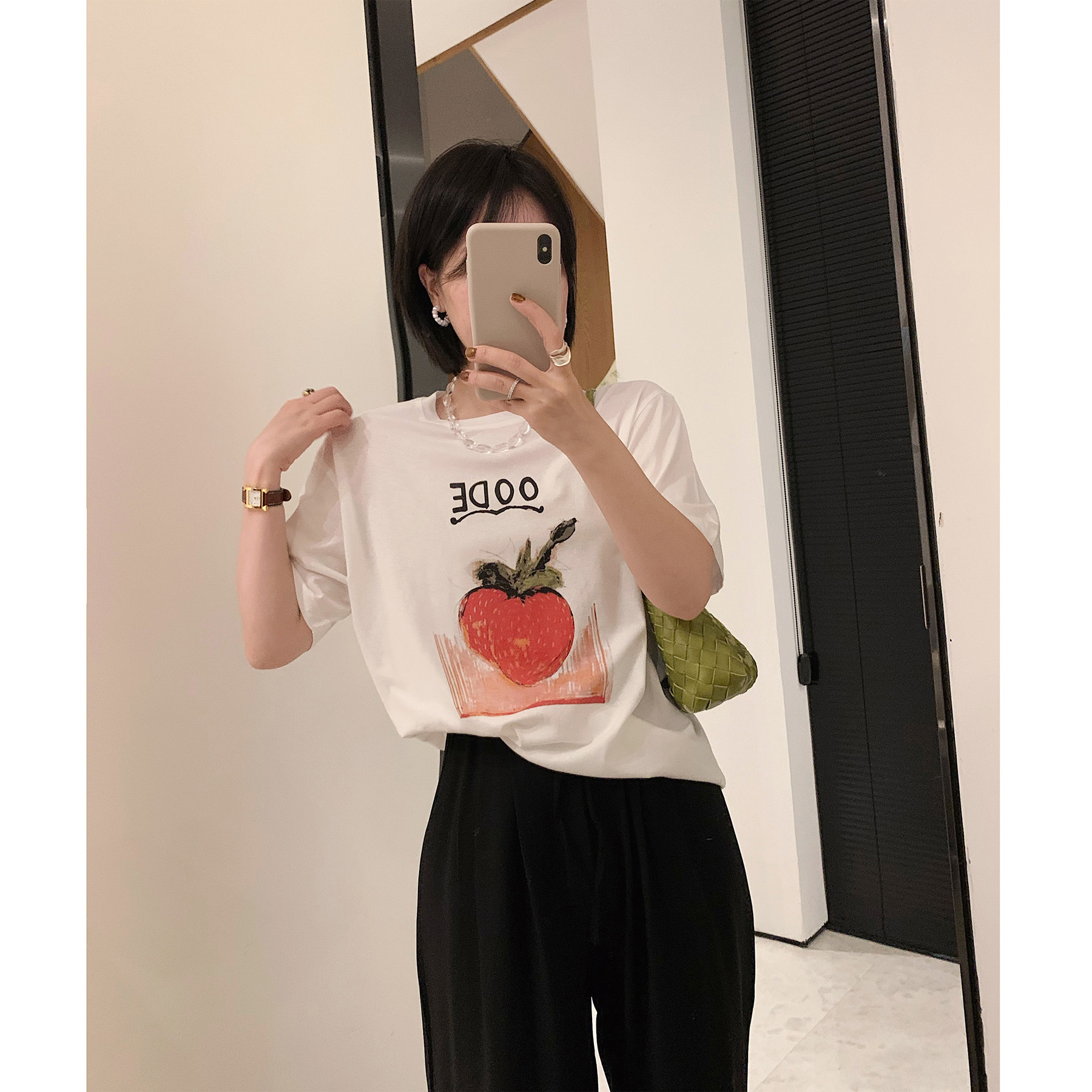misslady洋气时髦草莓宽松T恤女正肩轻薄百搭短袖上衣宽松显瘦