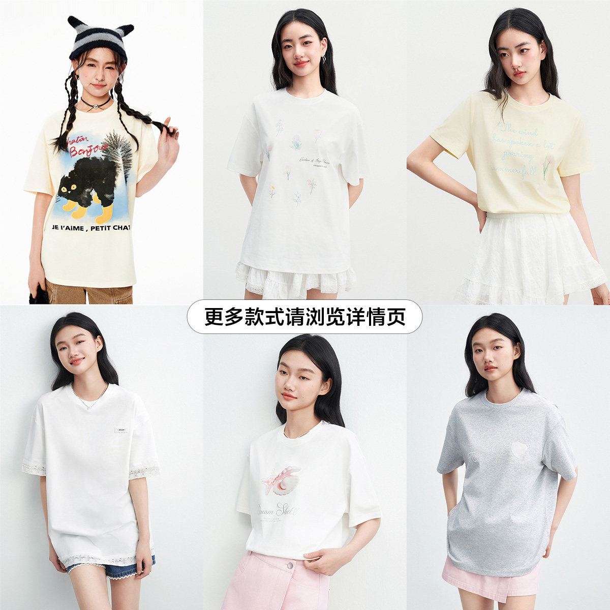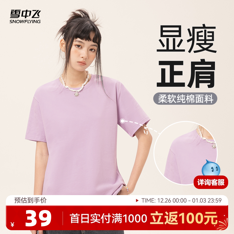【会员专享】雪中飞宽松t恤女夏季短袖2025新款纯棉半截袖上衣PC