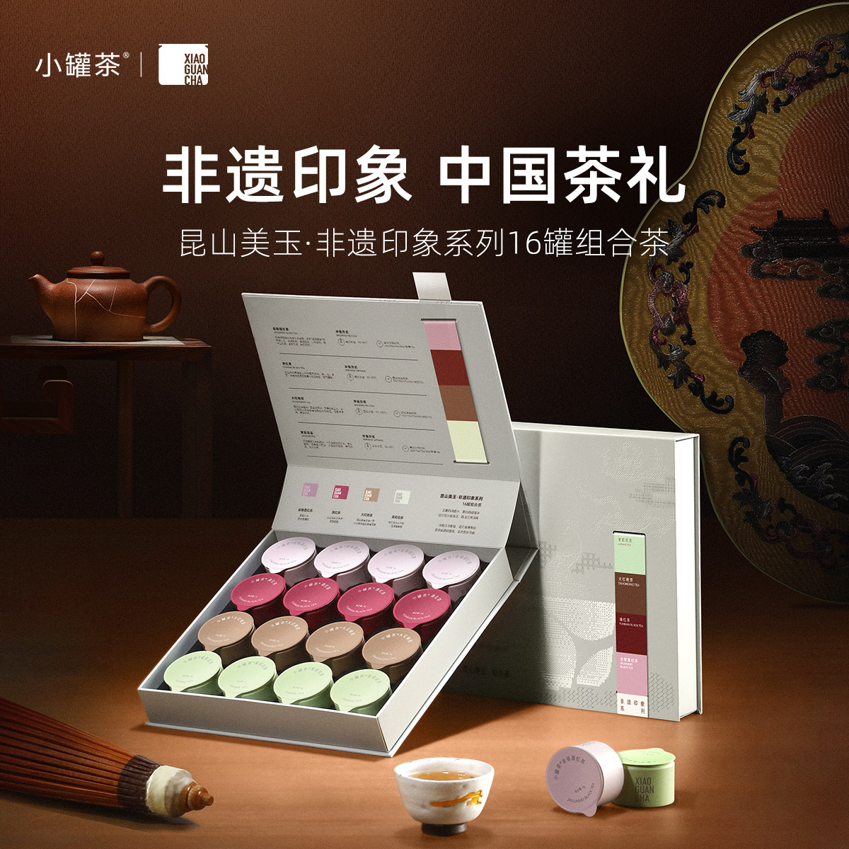 小罐茶非遗印象16罐组合特级茉莉花滇红大红袍茶叶礼盒装送礼长辈