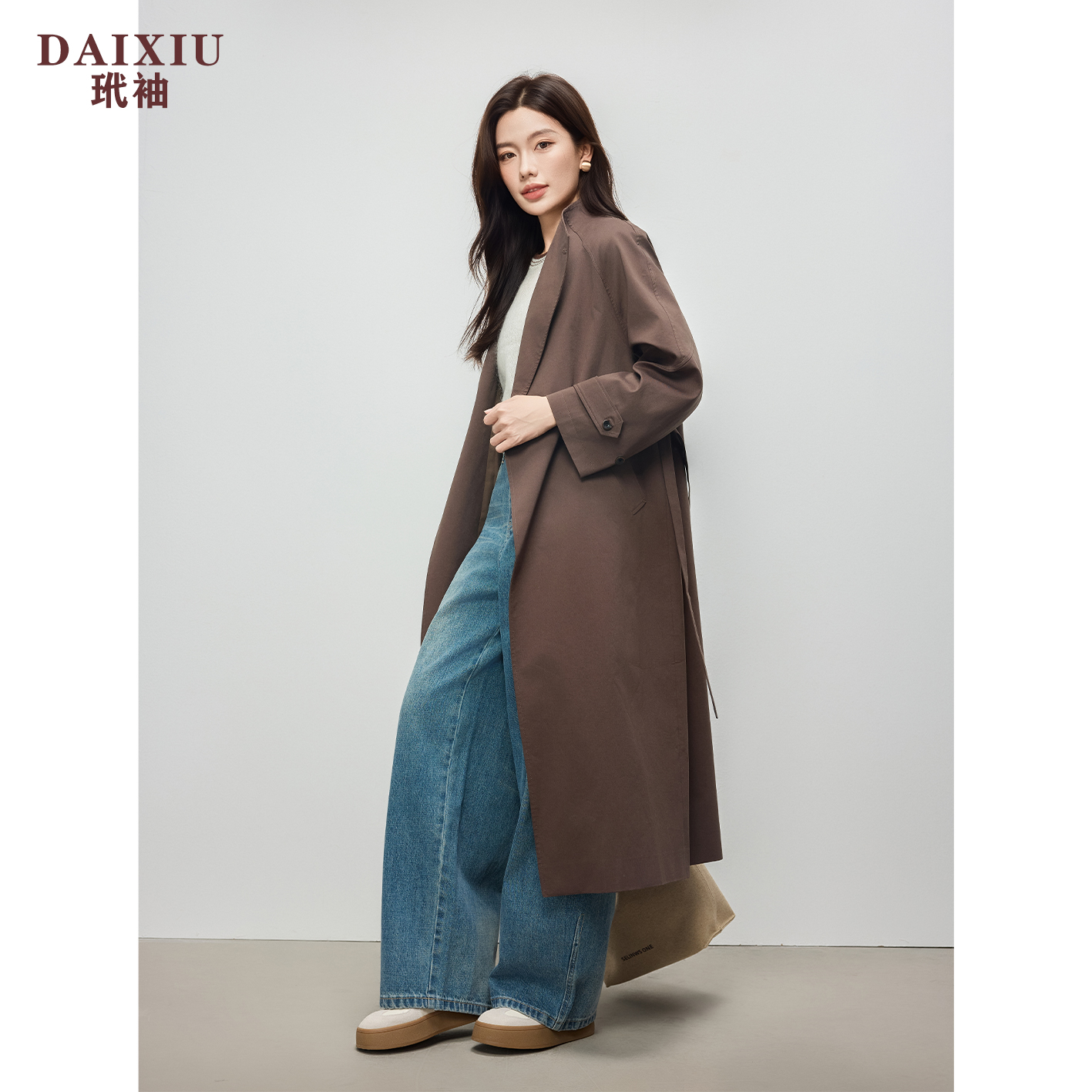 DAIXIU气质款精棉2025秋新款中长款纯色风衣女经典廓立领复古外套