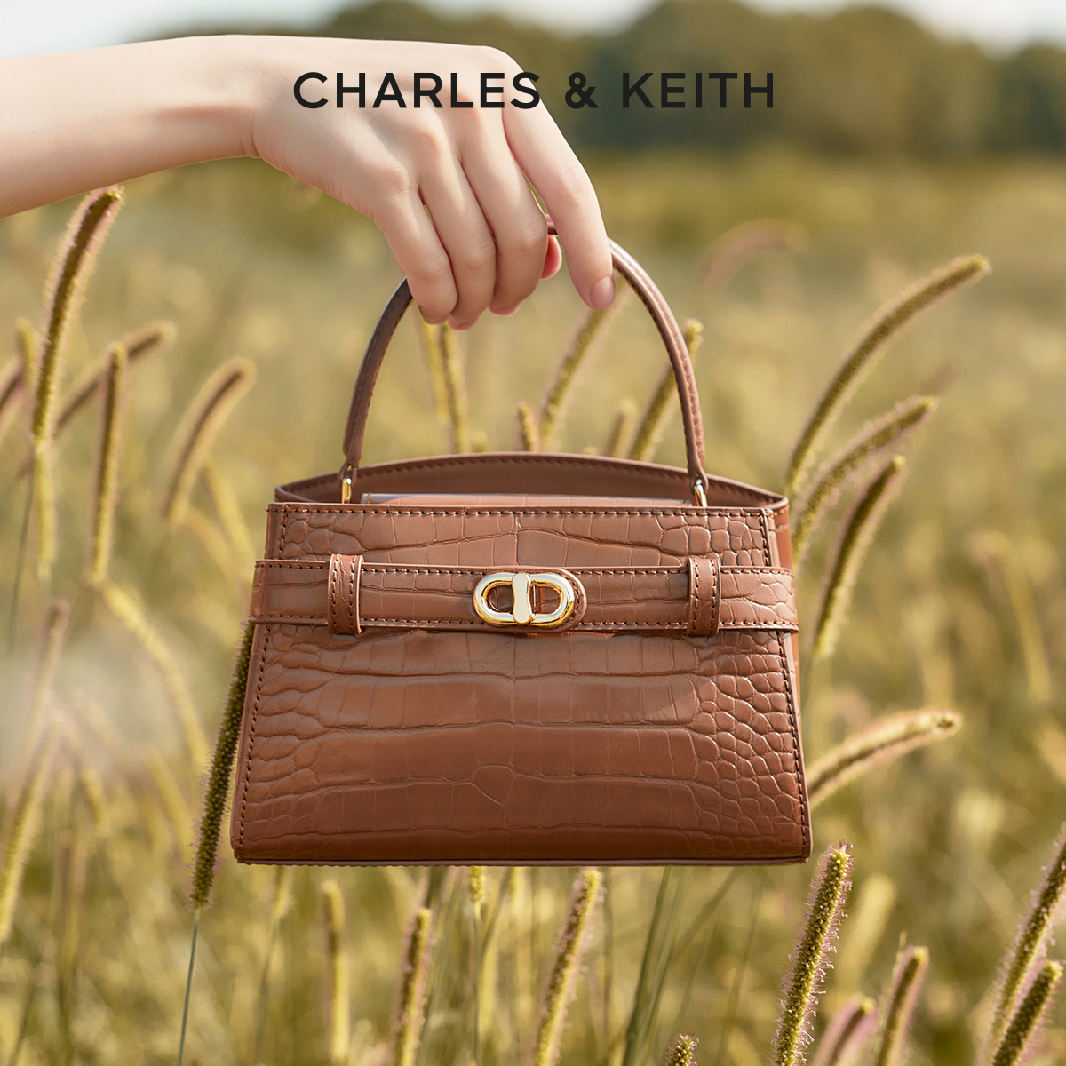 CHARLES&KEITH秋冬女包CK2-50270880小号金属扣带饰手提凯莉包女