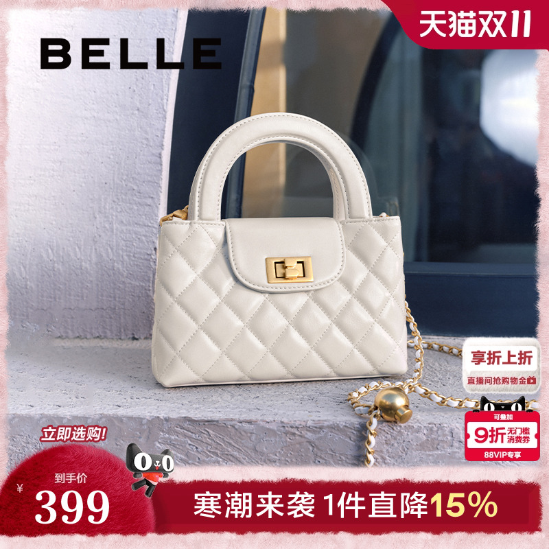 百丽包包女小香风mini凯莉包手提送妈妈红色新娘婚包小方包X7183