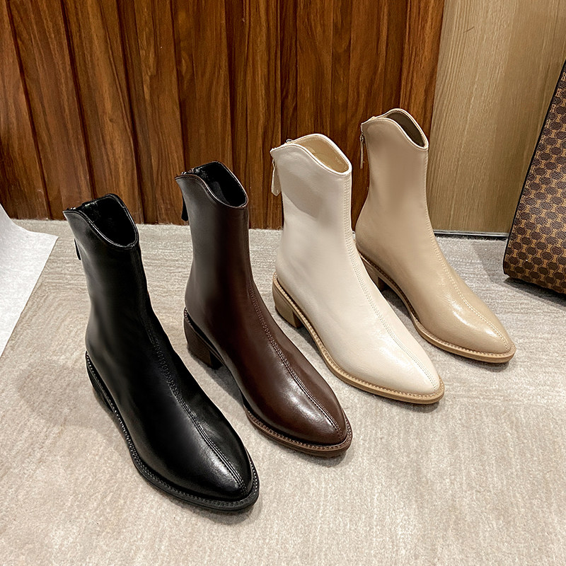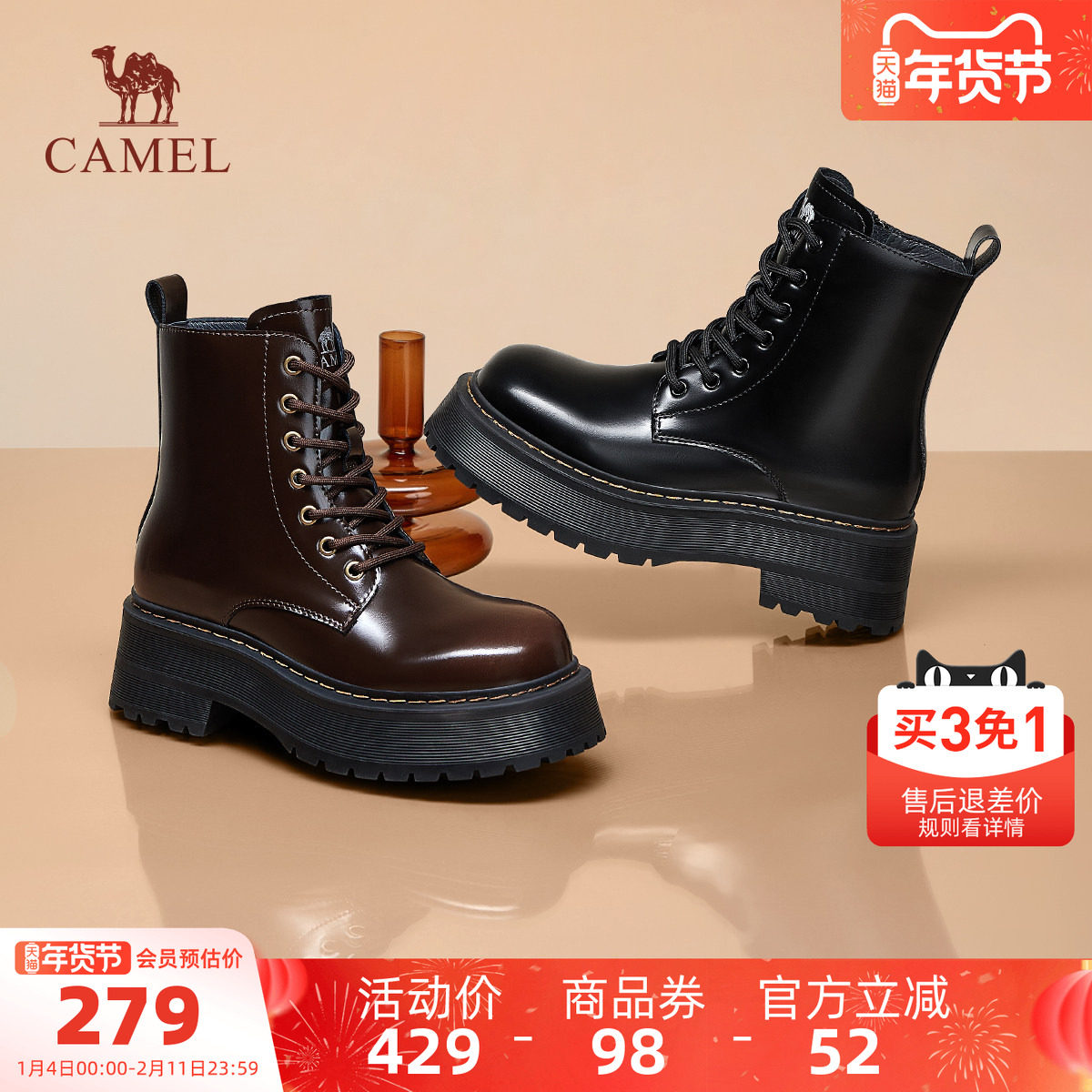 骆驼女鞋2025夏季新款真皮休闲拉链短靴粗跟厚底百搭机车马丁靴女