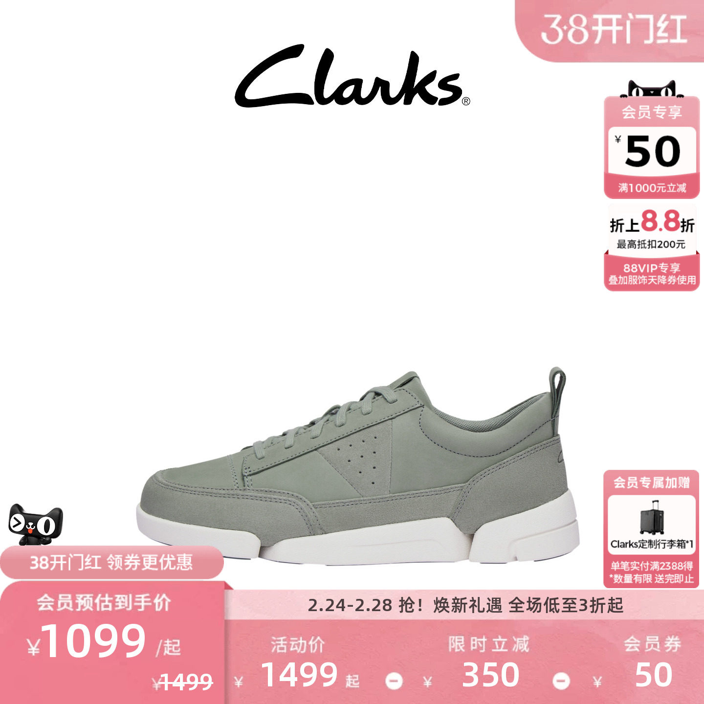clarks其乐男鞋皮TriSpark新款三瓣底运动休闲鞋时尚潮流轻便板鞋
