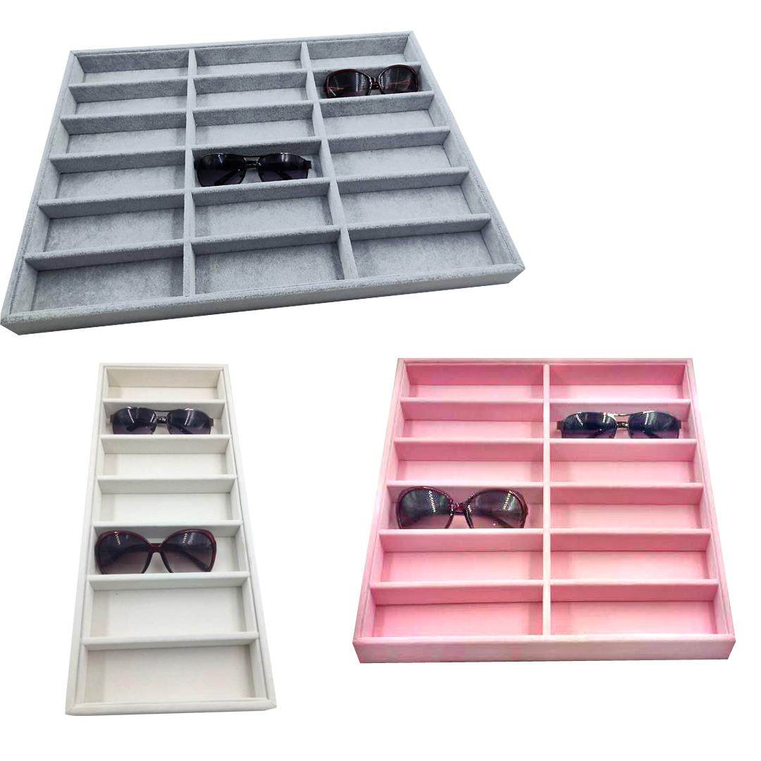 包邮定制绒布眼镜收纳盒18多格墨镜太阳镜展示盒收藏架多功能托盘