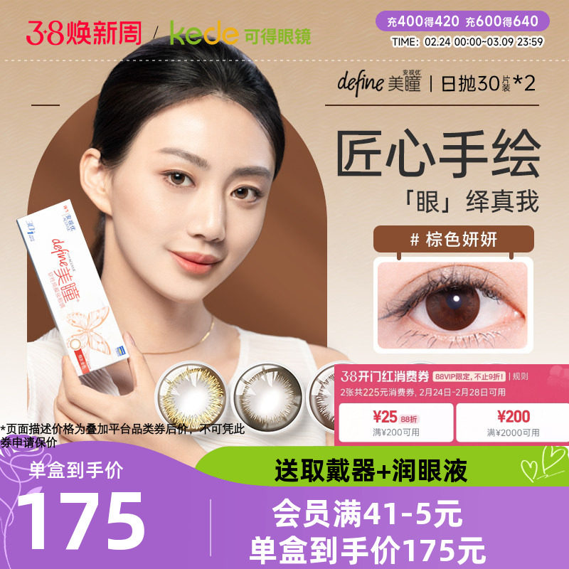 强生安视优define美瞳日抛30片*2盒彩色隐形眼镜女官方正品包邮