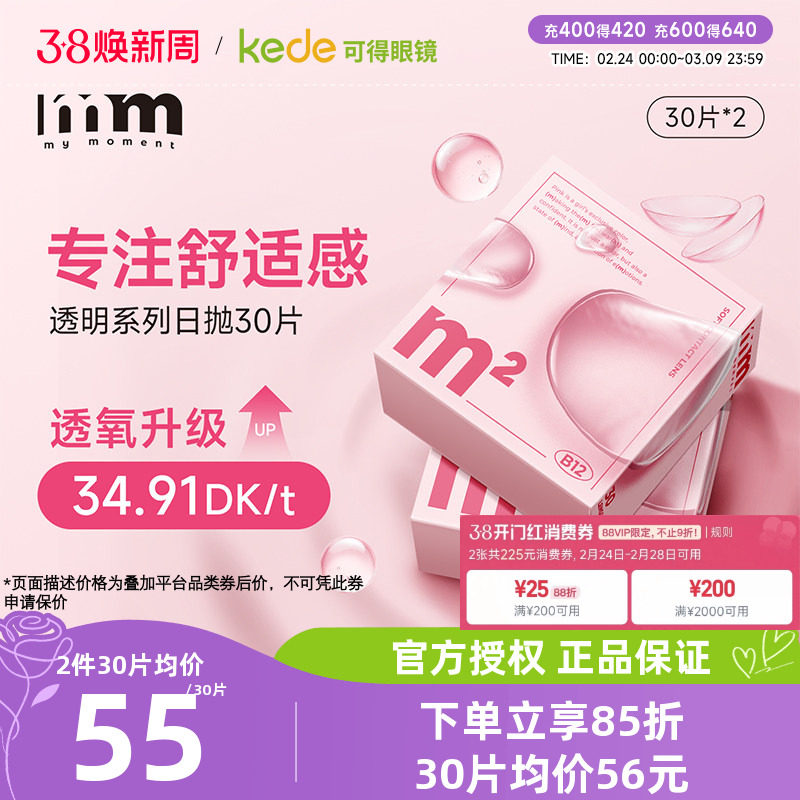 60片mm小粉片隐形近视眼镜日抛30片*2盒一次性透明官方正品包邮