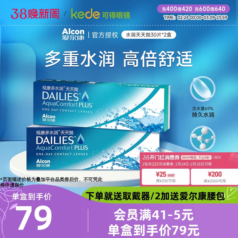 爱尔康视康多水润天天抛30片*2盒隐形近视眼镜日抛官方正品包邮