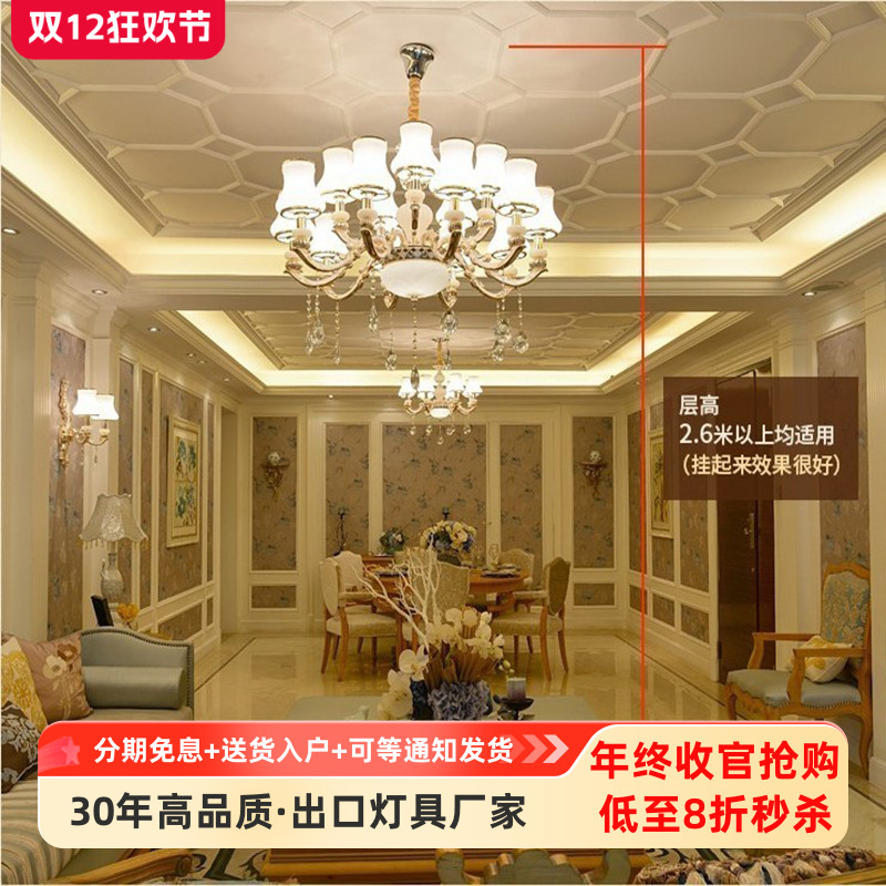 欧式客厅灯家用水晶吊灯大厅别墅奢华玉石2025年新款卧室高档灯具