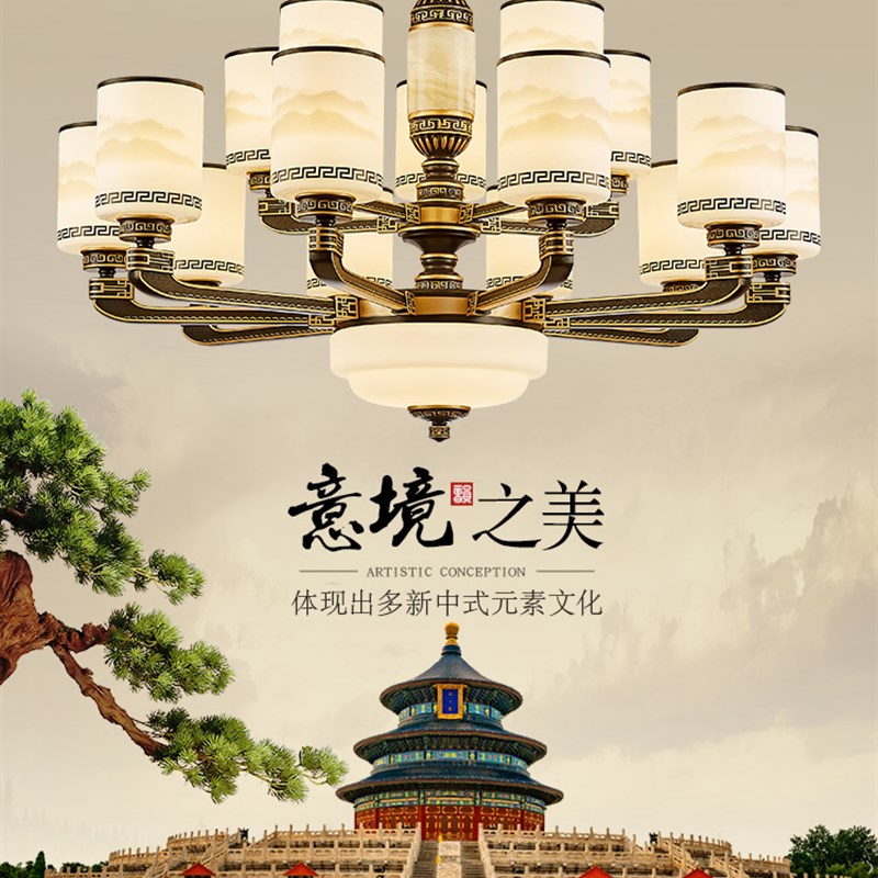 玉石新中式吊灯全铜客厅灯中国风禅意别墅餐厅大厅主灯中山灯具厂