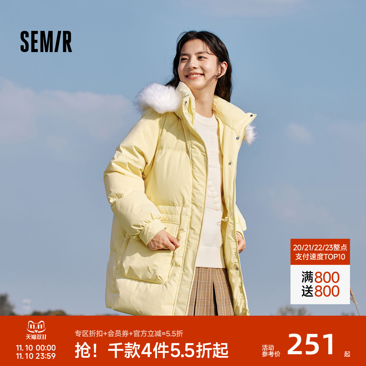 森马羽绒服女中长款收腰宽松毛领连帽2023冬季新款防风防水厚外套