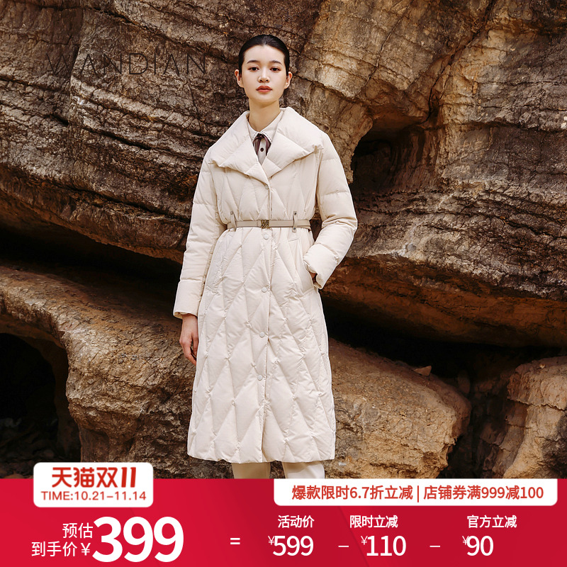 婉甸冬季燕麦色羽绒服中长款菱格腰带收腰经典简约1234D26RT4