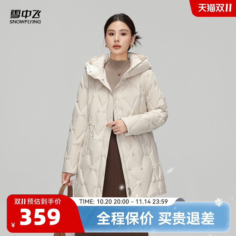 雪中飞2025冬新款女士中长款羽绒服连帽气质妈妈款外套收腰保暖