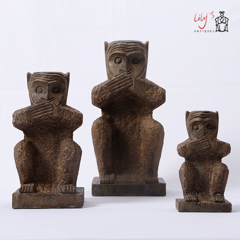 中式复古猴摆件客厅新品搭配工艺品创意家居礼品青石雕三不猴生肖