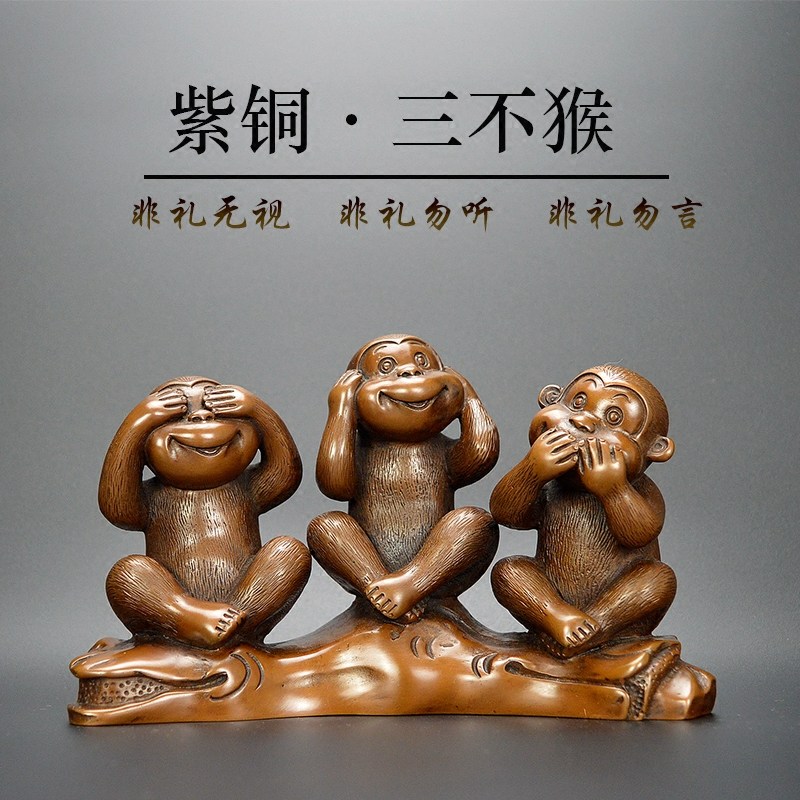 速发铜心实三不猴摆件铜猴子纸看不说不听镇不茶宠家居饰品黄铜办