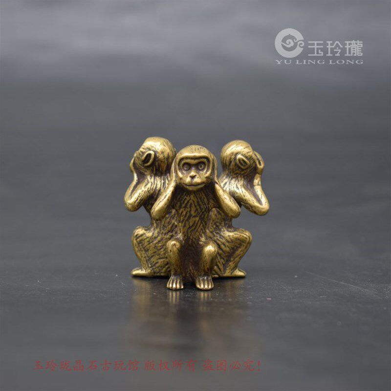 古玩铜器三不猴摆件生肖猴手把件不说不听不看小猴子吉祥物装饰品