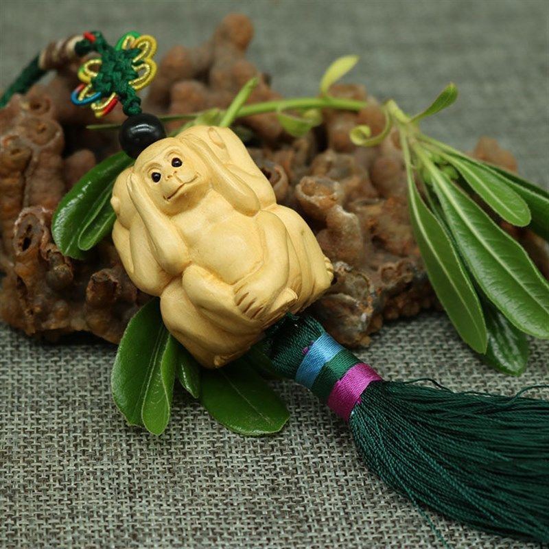 陈雕匠黄杨木雕刻车包挂件动物生肖车载饰品平安吊牌包邮三不猴子