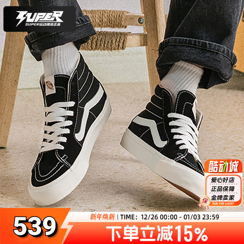 Vans范斯官方 Sk8-Hi黑色高帮男鞋女鞋职业滑板鞋滑板初学者