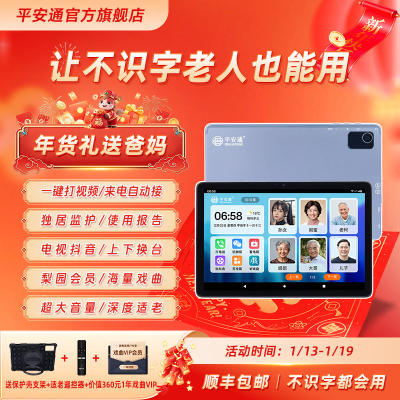 平安通老人专用平板电脑一键视频通话智能可视电话适合老年人看电视刷视频看戏曲机远程监护10.1英寸