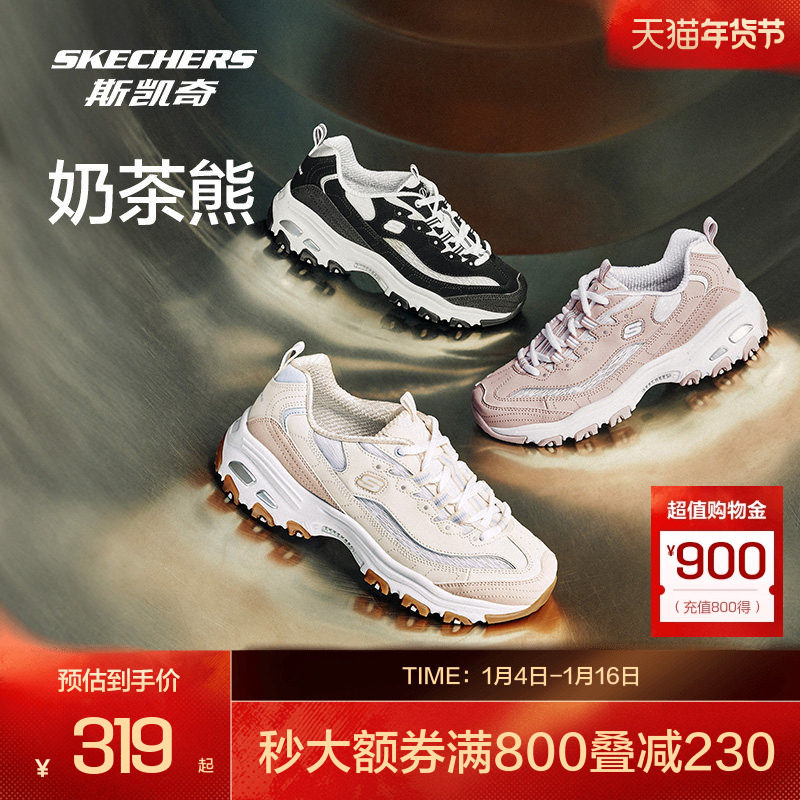 斯凯奇摩卡熊1代丨户外徒步鞋女莫兰迪运动鞋休闲老爹鞋熊猫鞋子