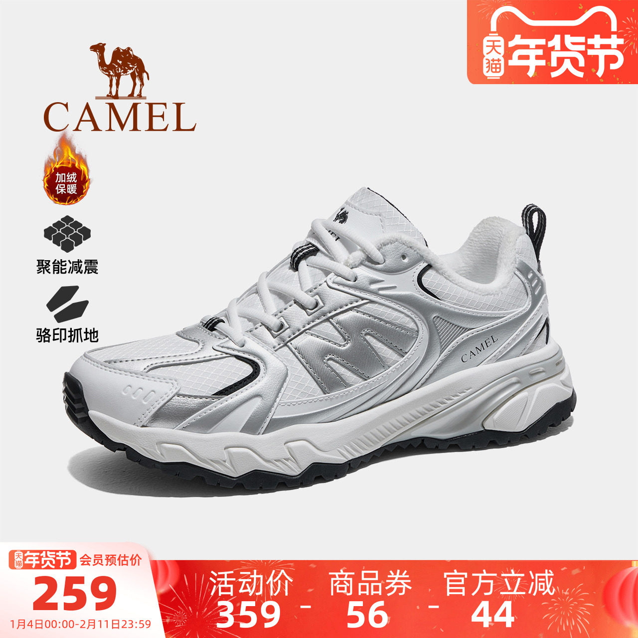 骆驼男鞋云山丑萌鞋2025秋冬新款情侣休闲运动鞋加绒户外徒步鞋女