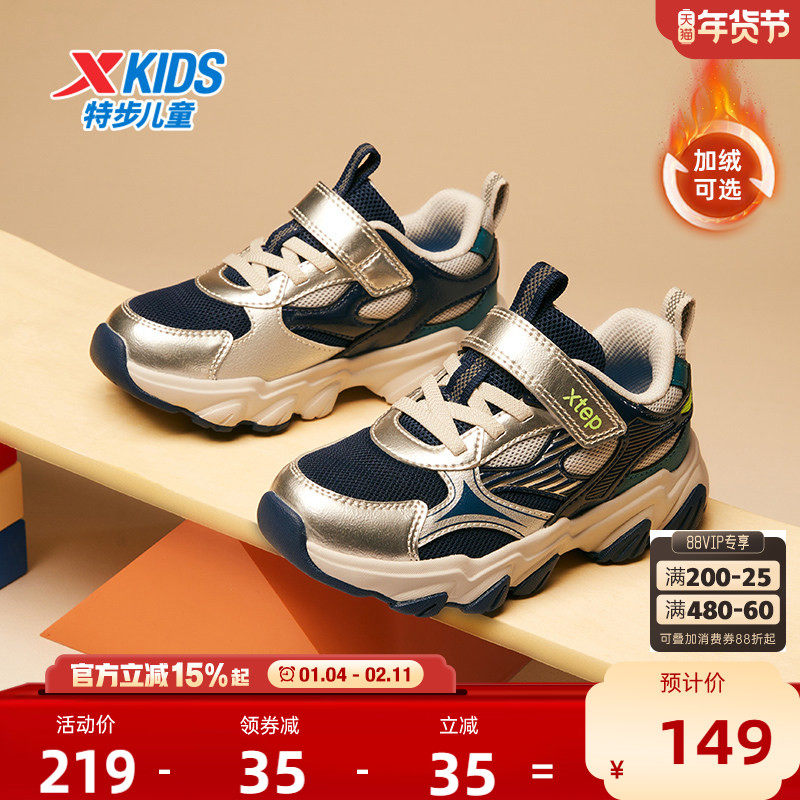 福燈贺岁|特步童鞋儿童休闲鞋男新年款保暖防滑中大童学生运动鞋