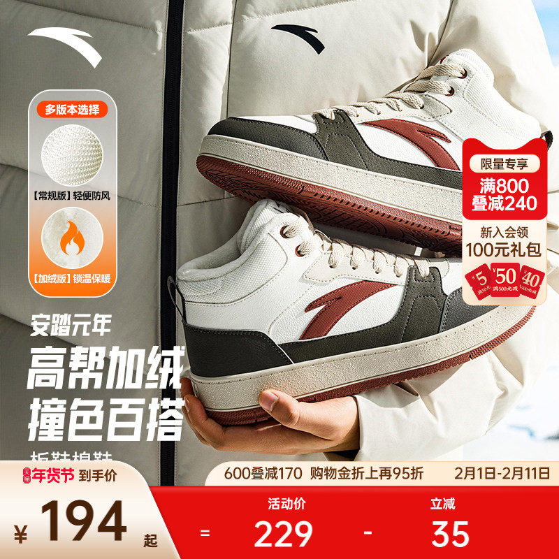 安踏元年2丨皮面防泼水高帮棉鞋男鞋冬季加厚加绒保暖运动鞋板鞋