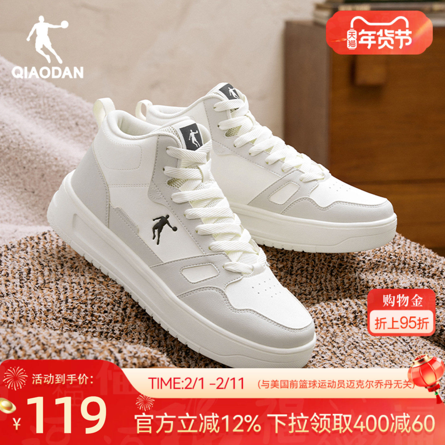 乔丹皮面高帮板鞋加绒保暖男款灰色2025年冬季运动休闲鞋厚底增高