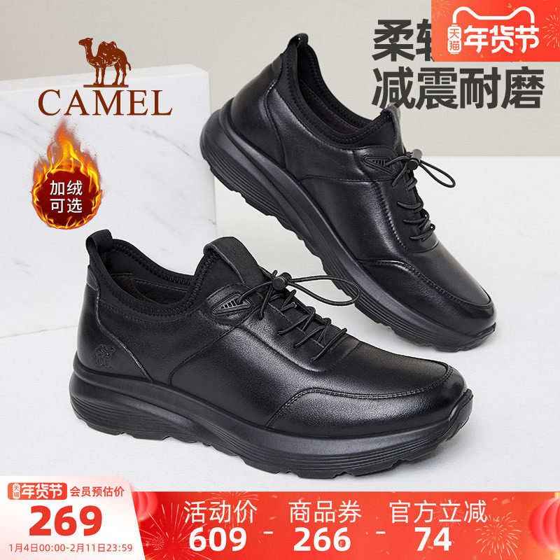 骆驼男鞋2026春季真皮商务休闲男士皮鞋加绒保暖棉鞋中年爸爸鞋子