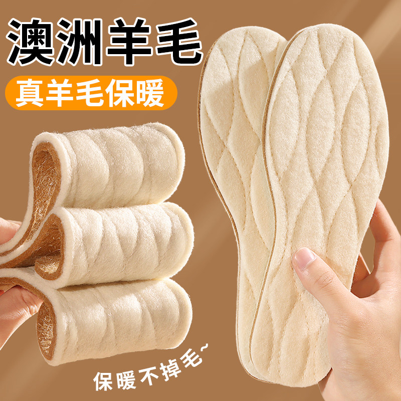 羊毛鞋垫冬季保暖加绒加厚女款男士皮毛一体吸汗防臭纯毛绒棉鞋垫