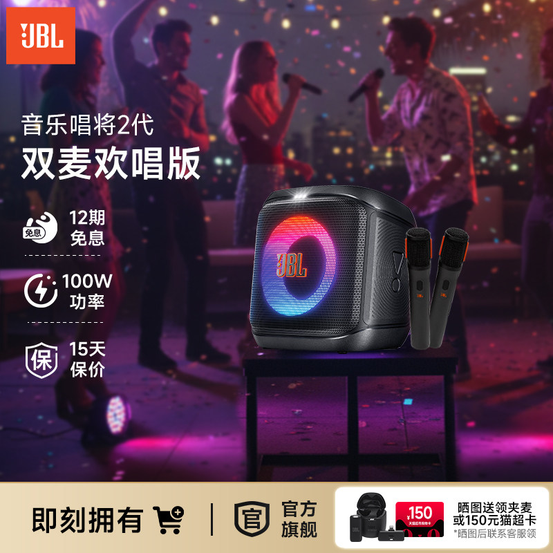 JBL唱歌音箱套装唱将2代KTV话筒便携户外家庭用K歌音响一体机礼物