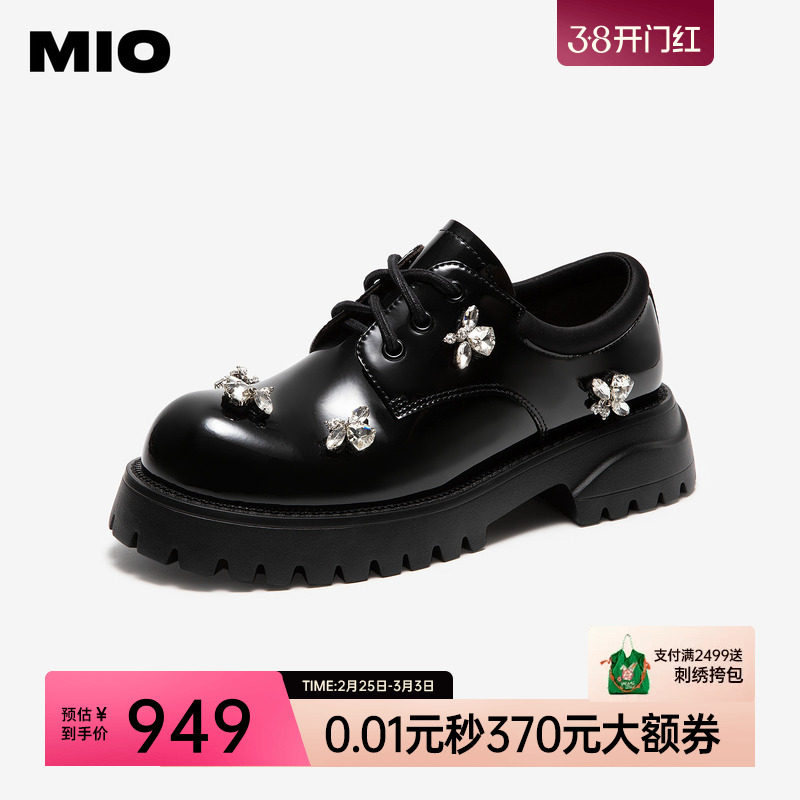 MIO米奥春夏款牛津鞋圆头学院风千金乐福钻饰厚底松糕鞋女单鞋