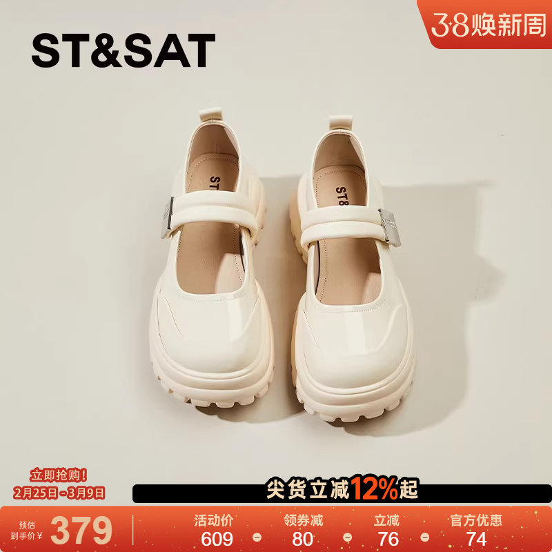 Thirty More玛丽珍鞋女2026夏季简约厚底松糕鞋欧美增高黑白单鞋