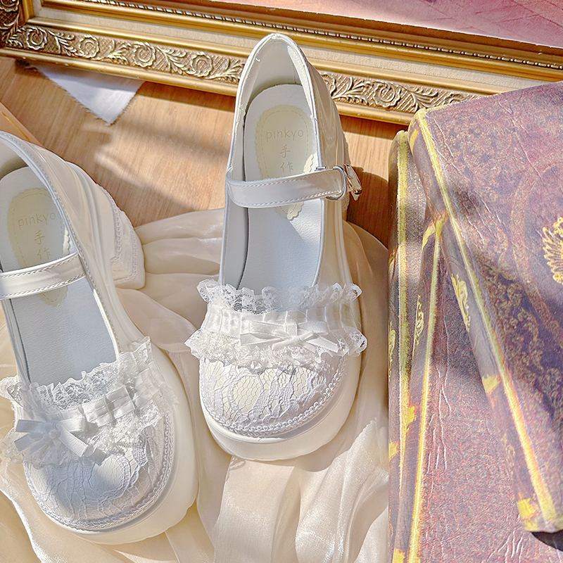 PINKYO原创白色蕾丝蝴蝶结高跟鞋女2024春夏松糕厚底玛丽珍单鞋