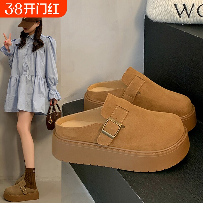 勃肯鞋女外穿2026年春夏新款厚底加绒一脚蹬包头半拖鞋单鞋松糕底