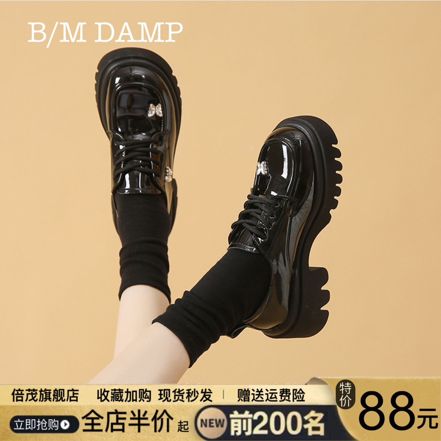厚底小皮鞋女2025新款春秋夏季蝴蝶亮面松糕系带JK全真皮乐福单鞋
