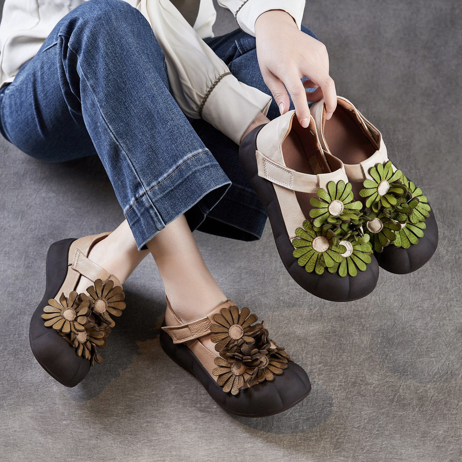 头层牛皮厚底花朵玛丽珍鞋2026春夏季新款民族风复古单鞋松糕女鞋