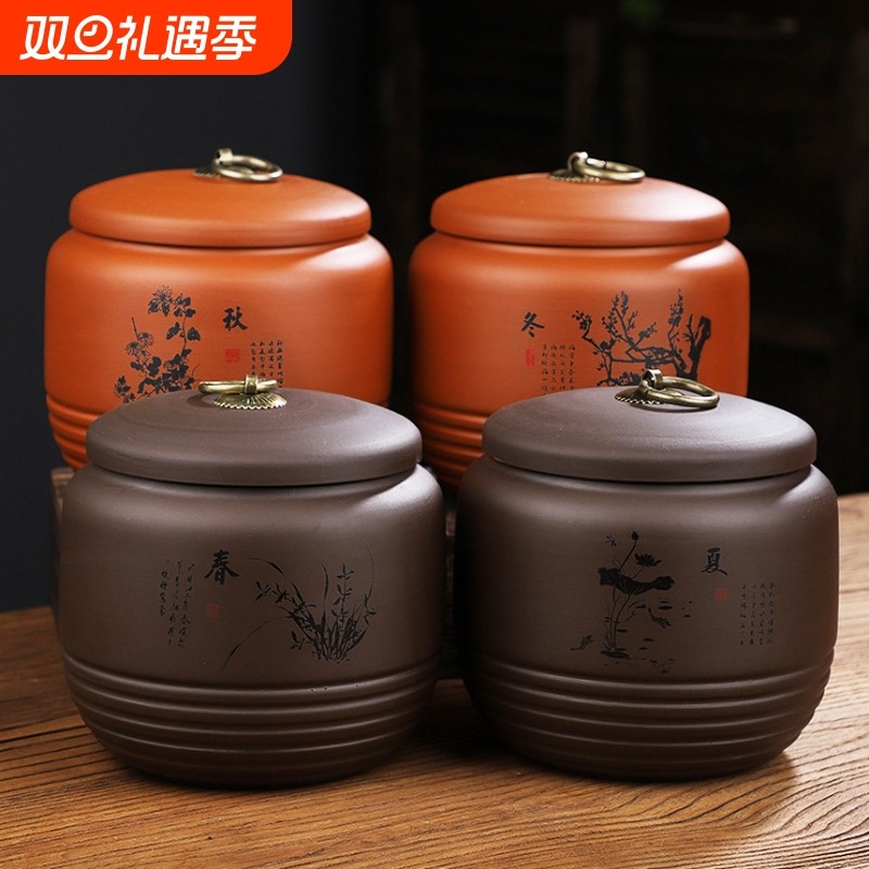 紫砂茶叶罐花茶白茶散茶罐普洱罐防潮密封储存罐复古家用茶具配件