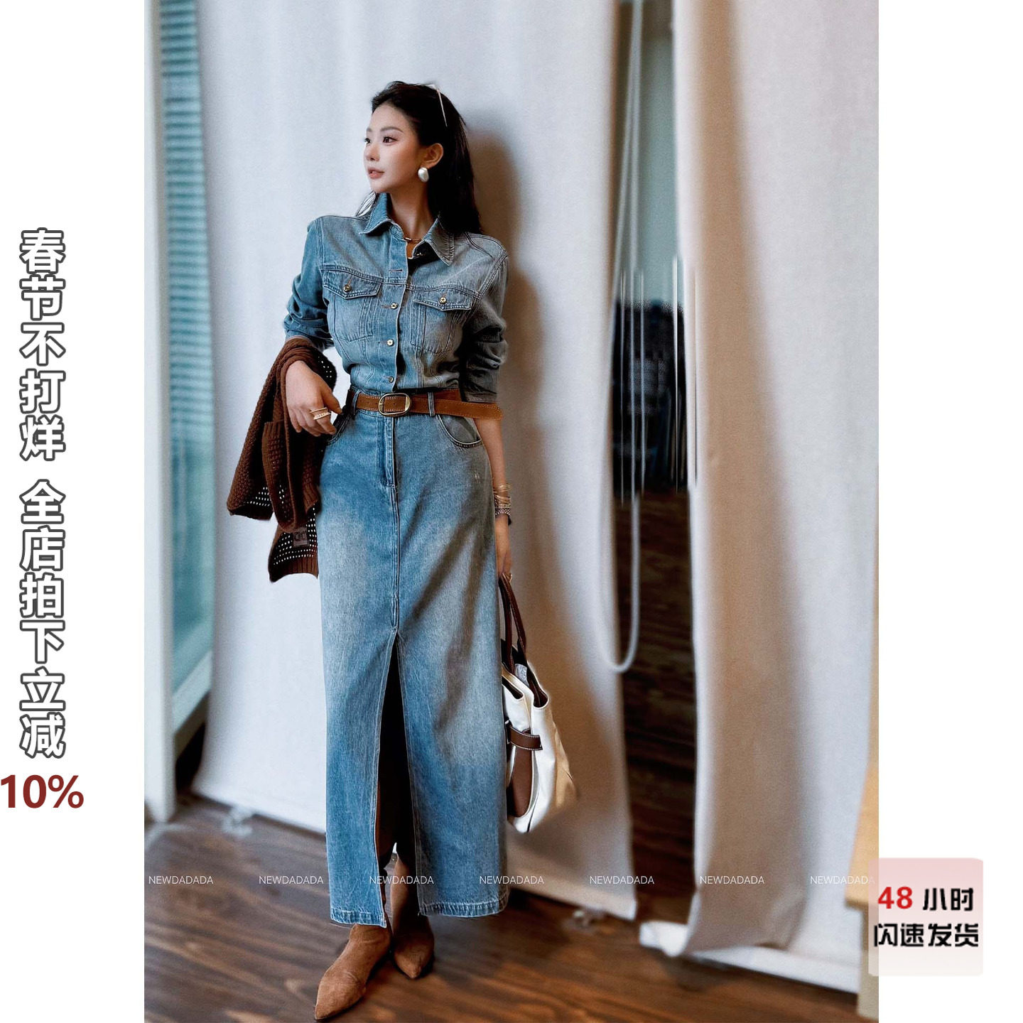 利达NEW DADADA【朝光如旧】牛仔连衣裙女长袖中长款高腰包臀裙