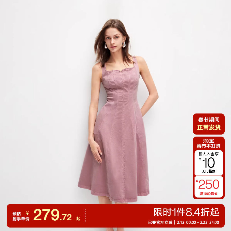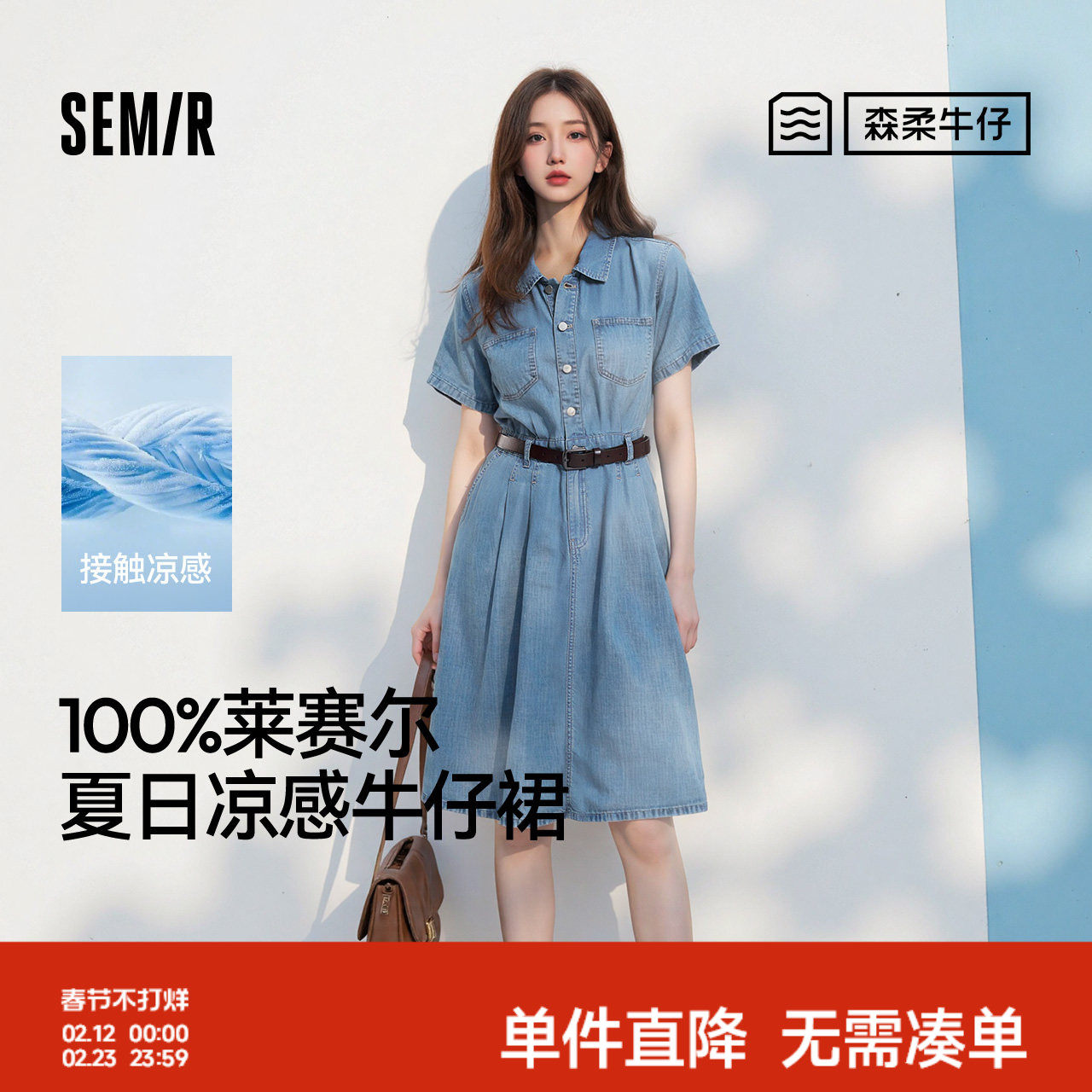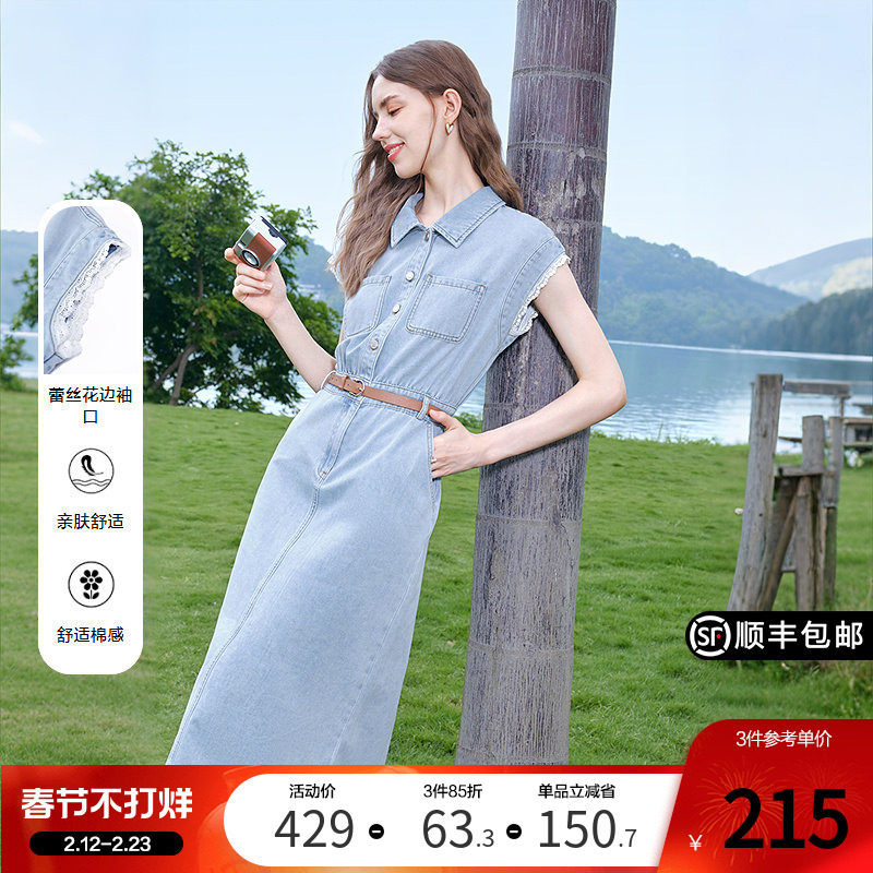 森柔牛仔|森马牛仔连衣裙女收腰翻领港风2025夏新款凉感中长裙