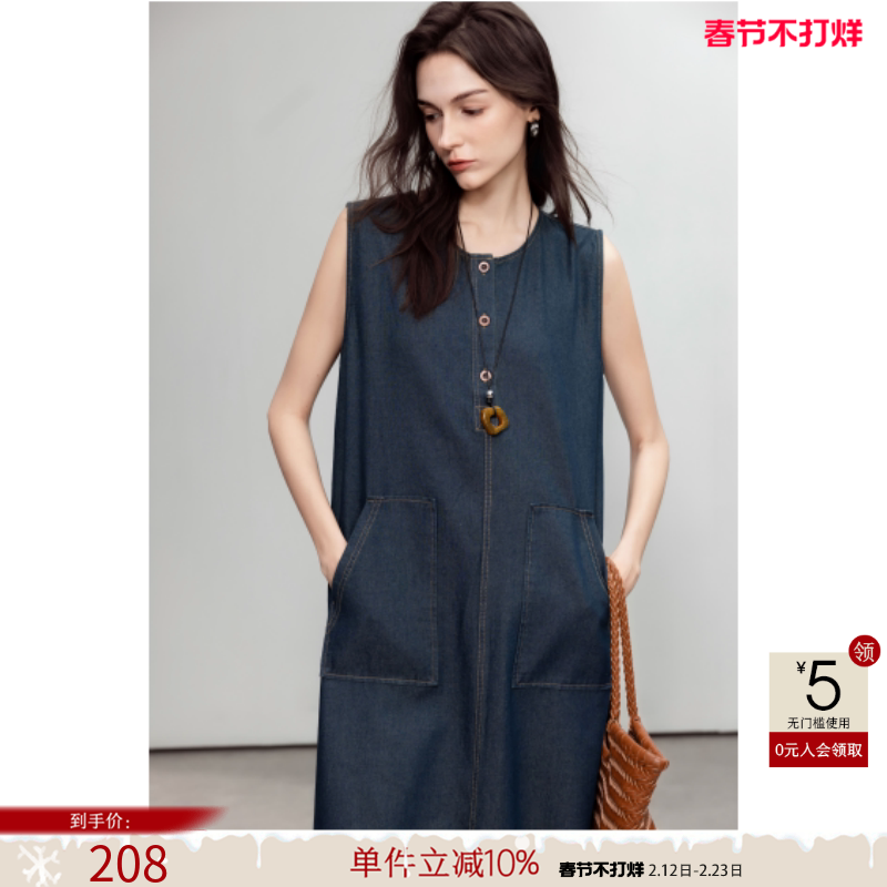 德玛纳复古风无袖牛仔连衣裙女25夏季新款休闲慵懒圆领宽松中长裙