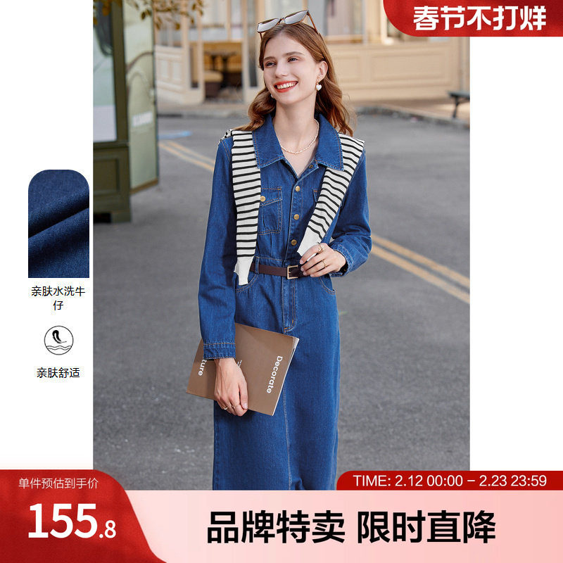 【100%棉】Eland衣恋连衣裙女时尚通勤牛仔中长裙2025冬季新款