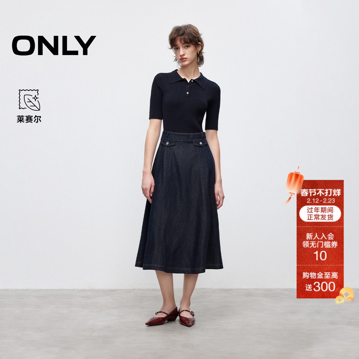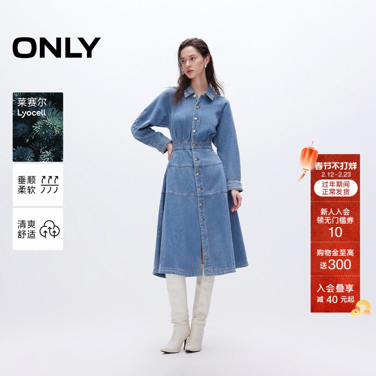 ONLY2026春季新款莱赛尔复古翻领牛仔中长裙连衣裙女|125142002